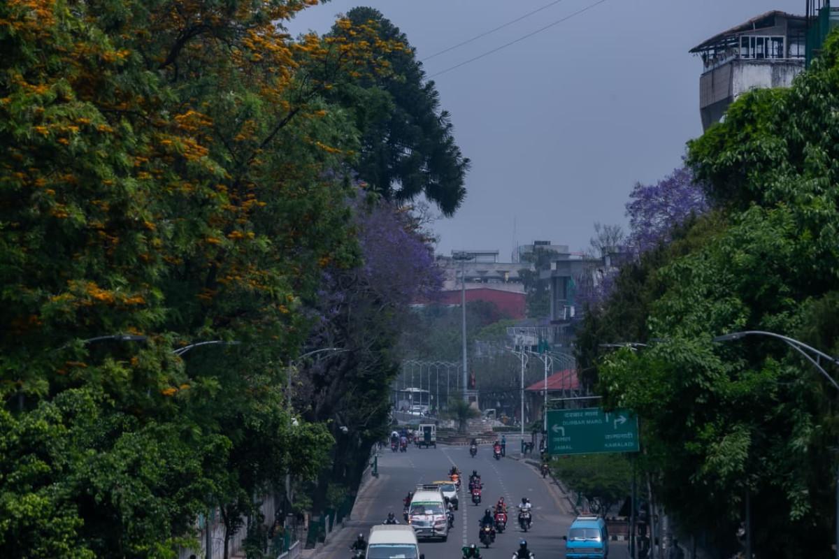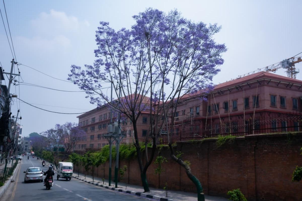 शहरका व्यस्त सडकहरूमा यतिबेला मात्र ट्राफिक जाम छैन, त्यहाँ त वसन्तको एउटा कव्यात्मक उत्सव चलिरहेको छ । सुन्धारादेखि दरबारमार्गसम्म, अनि रत्नपार्कदेखि जमलका गल्लीहरूसम्मका ज्याकाराण्डाका रुखहरू फूलको भारले निहुरिएका छन् । ती डालीहरूबाट खसेका फूलका गुच्छाहरूले सडकका किनारा र फुटपाथलाई बैजनी गलैँचामा परिणत गरिदिएका छन् । ती सुन्दर पत्रदलहरूमाथि टेक्दा बटुवाका पाइलाहरू पनि कता कता अडिन्छन्, मानौँ यो कुनै साधारण बाटो होइन, एउटा स्वप्निल संसारको प्रवेशद्वार हो । तस्बिरहरूमा कैद भएको काठमाडौं झनै जीवन्त देखिन्छ ।